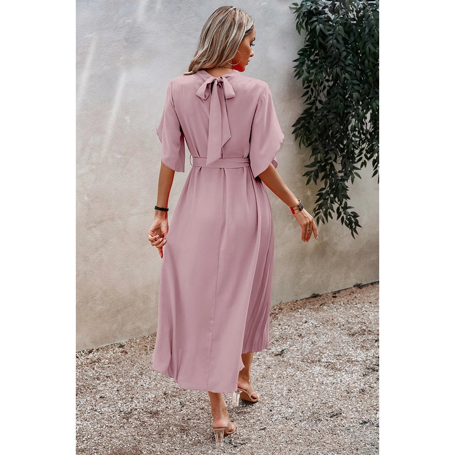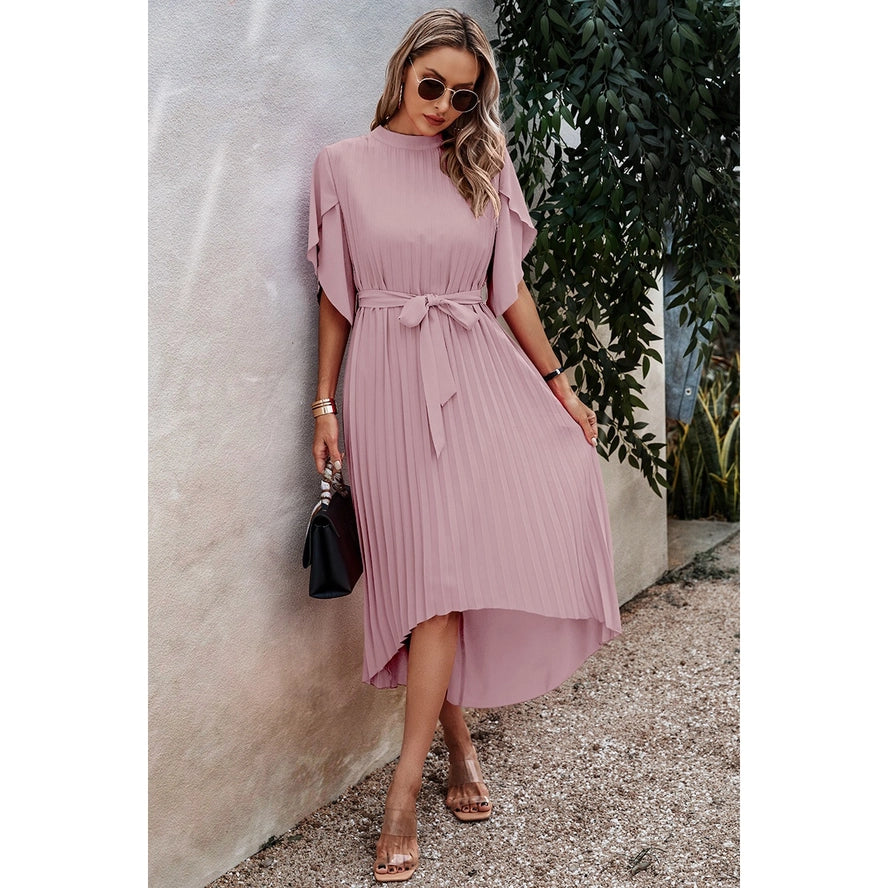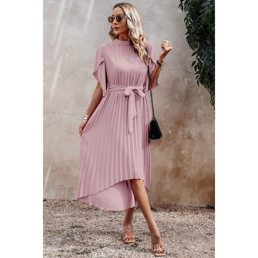 Introducing the Christy Church Girl Pleated Midi Dress, your new go-to for all occasions. With a high neckline, open sleeves, and a ruched knotted belt, this dress exudes elegance and sophistication. Made from soft, comfortable material, it's perfect for casual wear or for sunday morning service! Elevate your wardrobe with this luxurious and exclusive piece.
