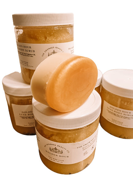 This bar is scented with our Golden Hour fragrance, a luscious blend of salted caramel with pistachio and warm sunshine. It’s like a beach vacation in a bottle!