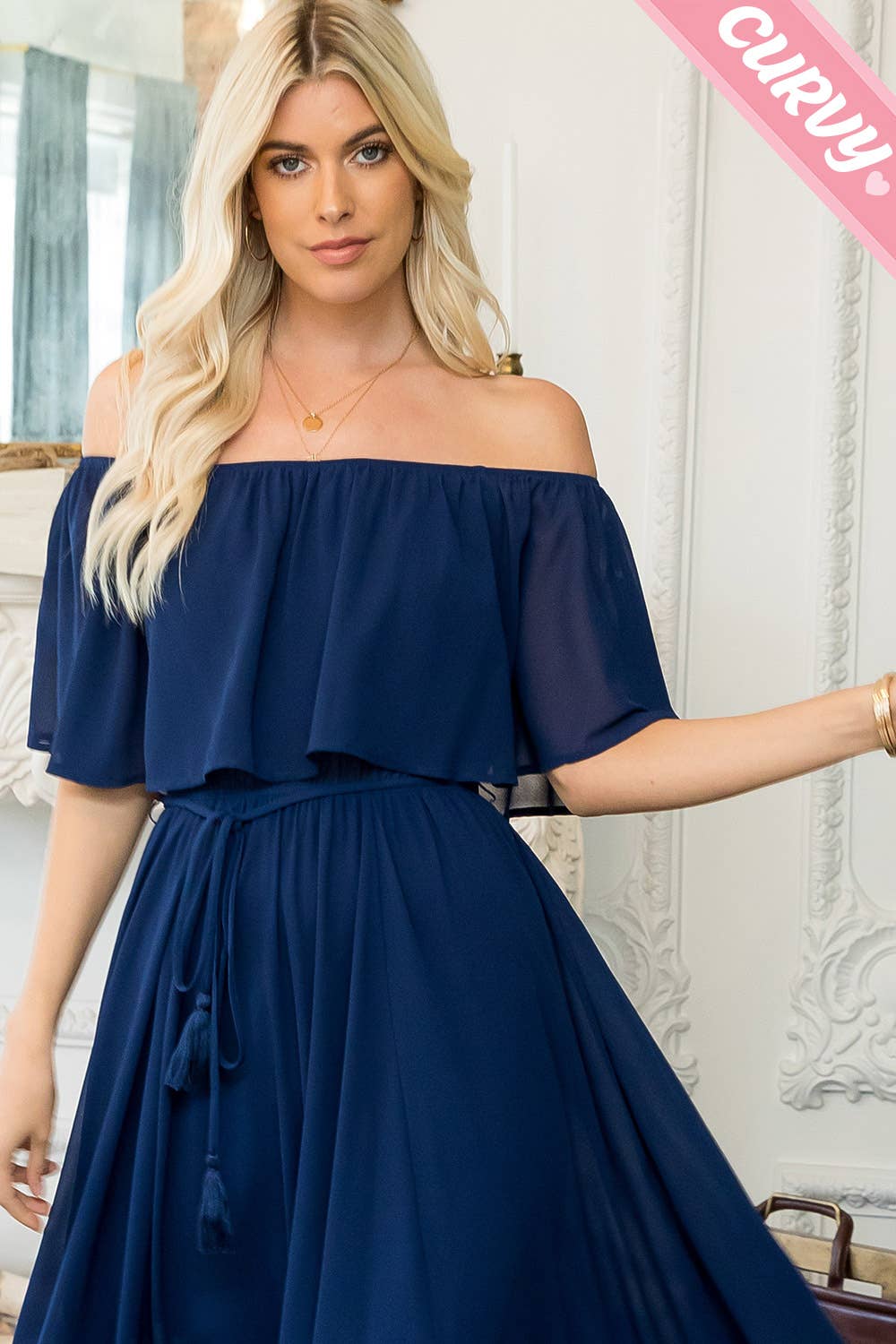 Indulge in the romance of our Off-Shoulder Maxi Dress. Its elastic ruffled neckline and waist offer comfort and style, while the self-tie belt accentuates your silhouette. The lightweight fabric drapes beautifully, revealing a feminine silhouette with a sultry side slit. Elevate your look with this flowing dress.