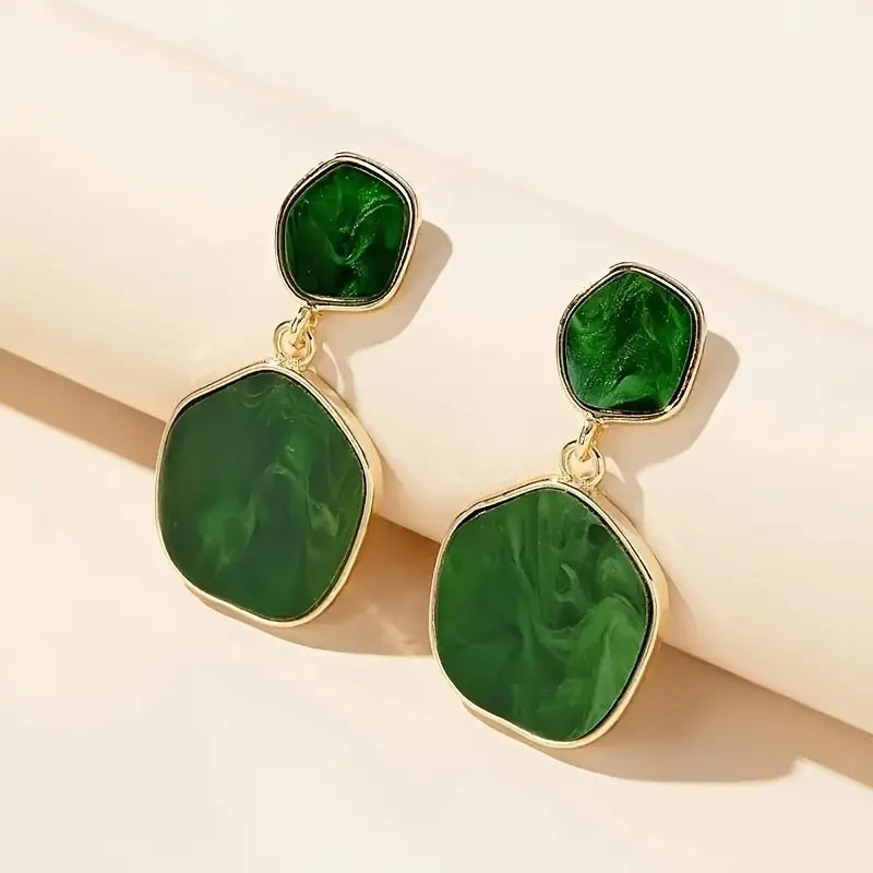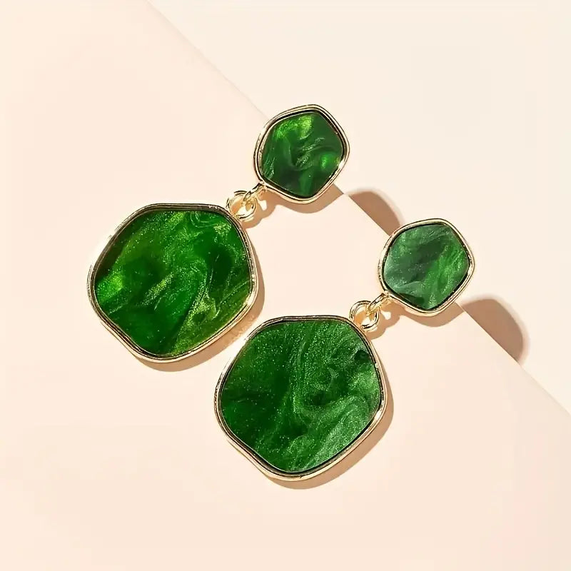 Step into a world of timeless elegance with our Retro Green Earrings. These vintage-inspired earrings feature a stunning green geometric design and an gold detail that adds a touch of sophistication to any outfit, making these dangle drop earrings a must-have for any fashion-forward individual. Elevate your style with these exclusive earrings.