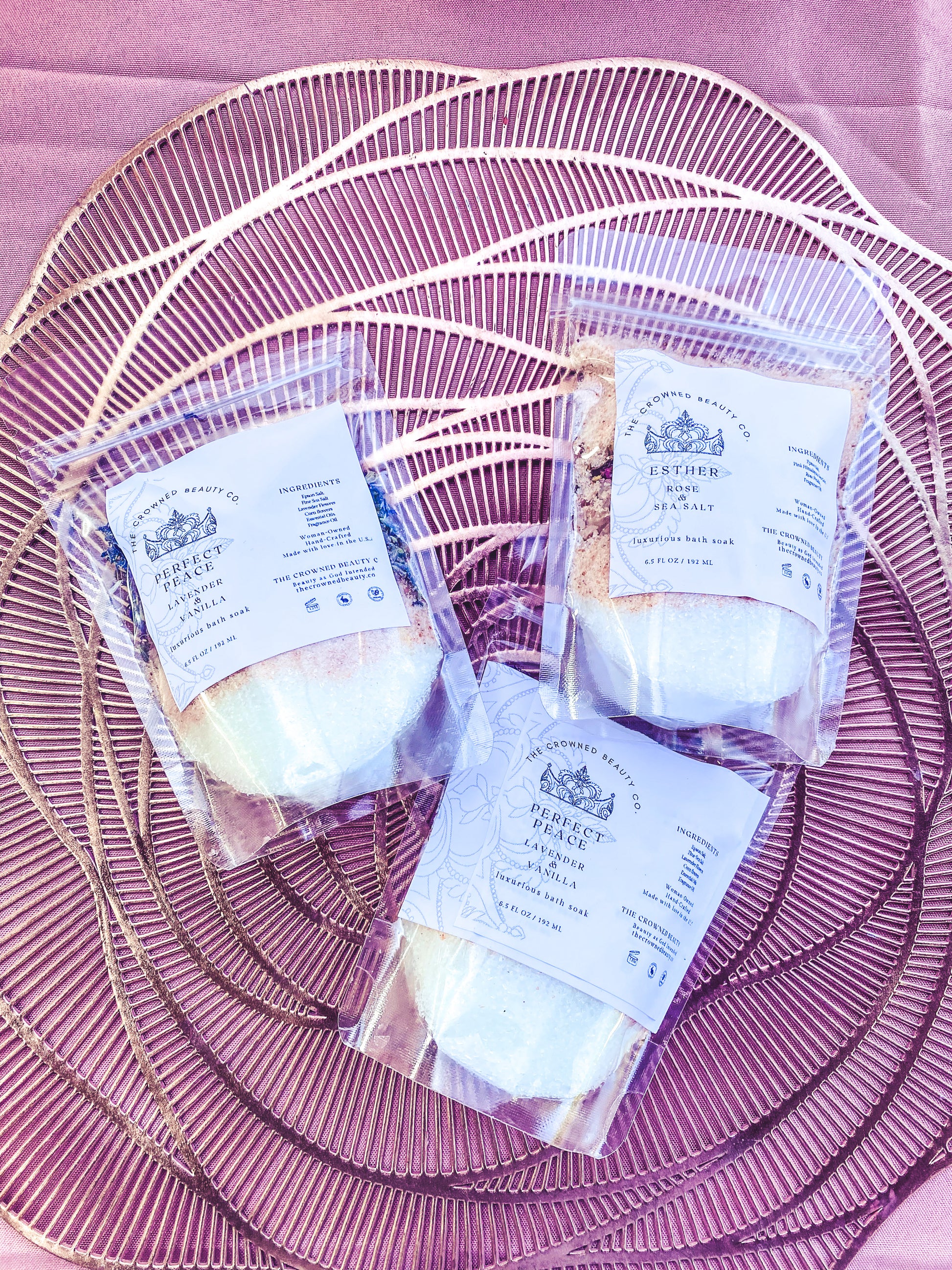 Our luxurious blend of Pink Himalayan and Epsom Salts, infused with Lavender and Vanilla fragrance and Finished with dried lavender flowers.