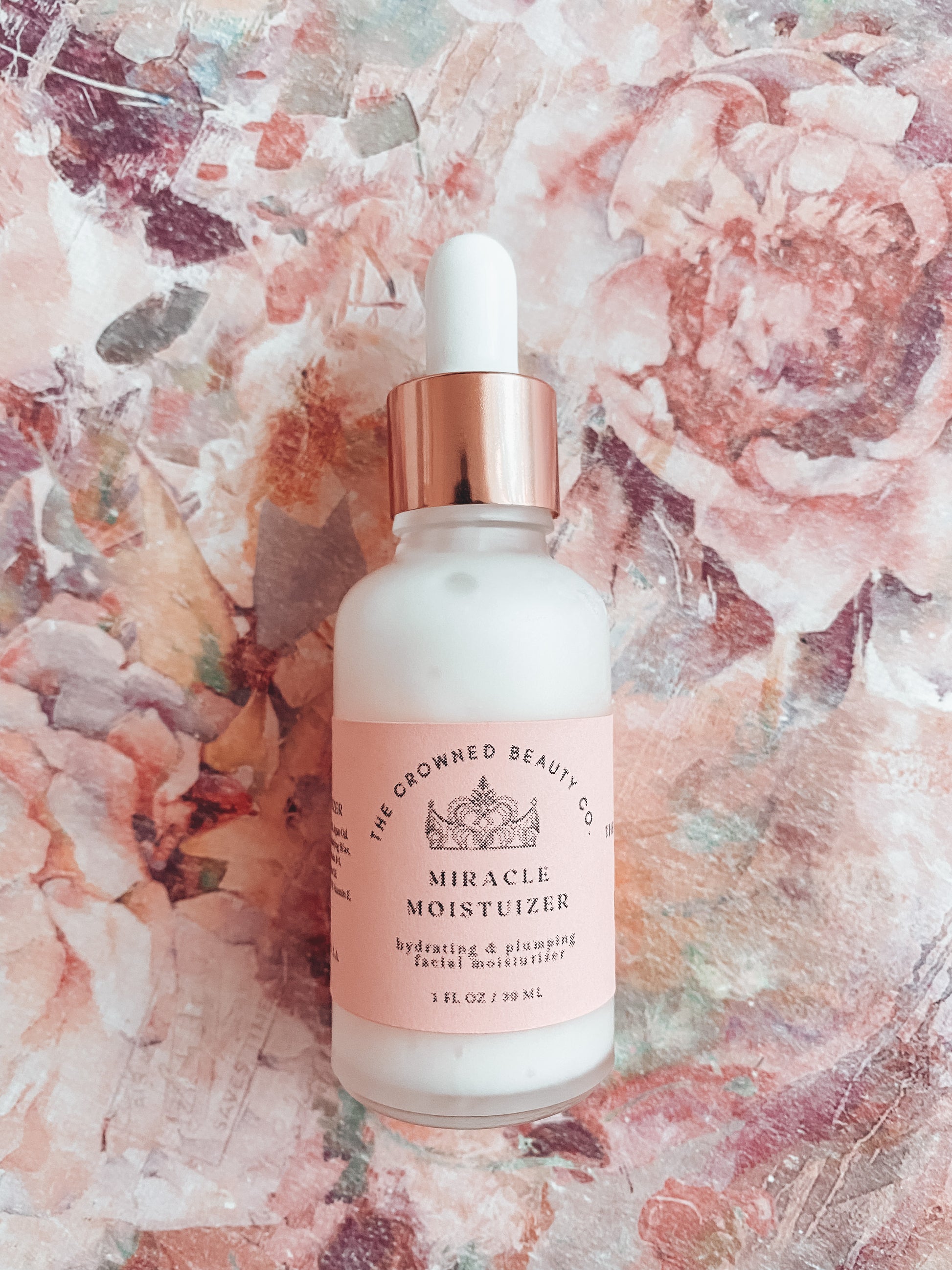 Our Miracle Moisturizer is made with hydrating ingredients including jojoba oil and hyaluronic acid, vitamin E, which are proven to nourish skin.