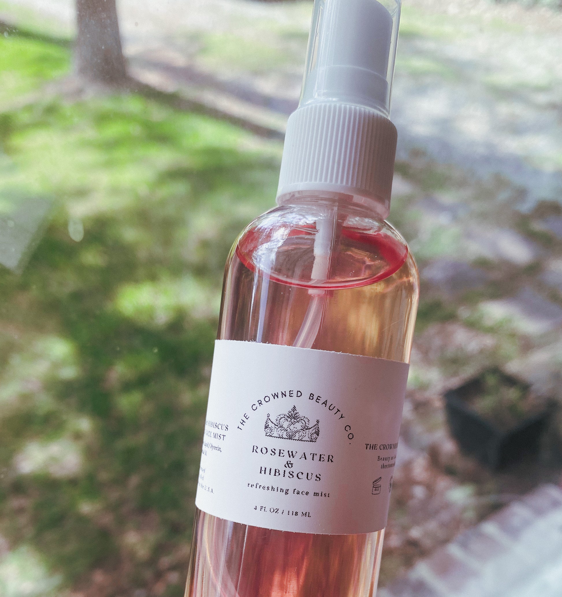 Our Rosewater & Aloe Facial Mist is a spray that creates a gentle mist of natural hydrating and soothing rosewater, aloe vera, and hibiscus.