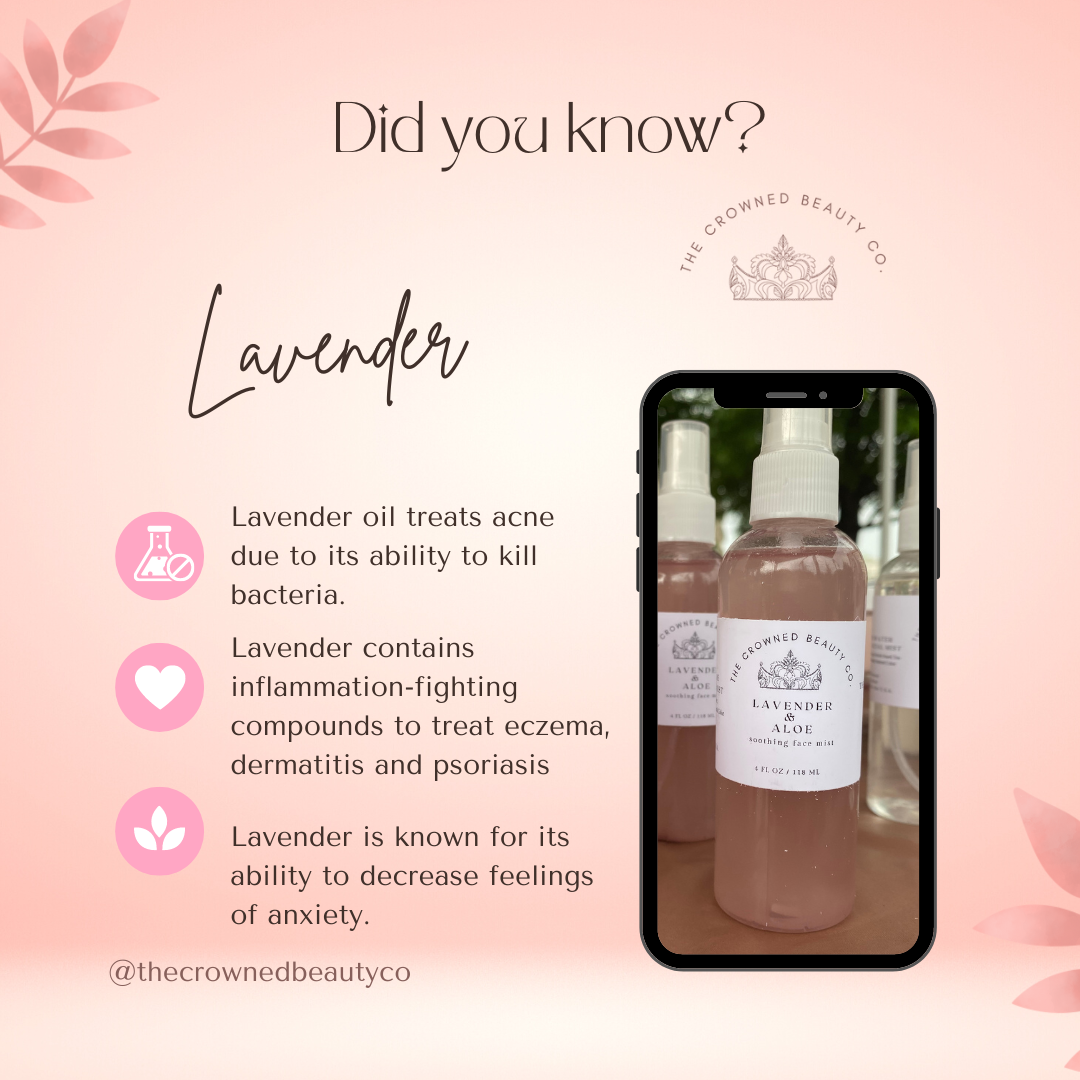 - Lavender and Aloe Vera both help to fade blemishes and even skin tone