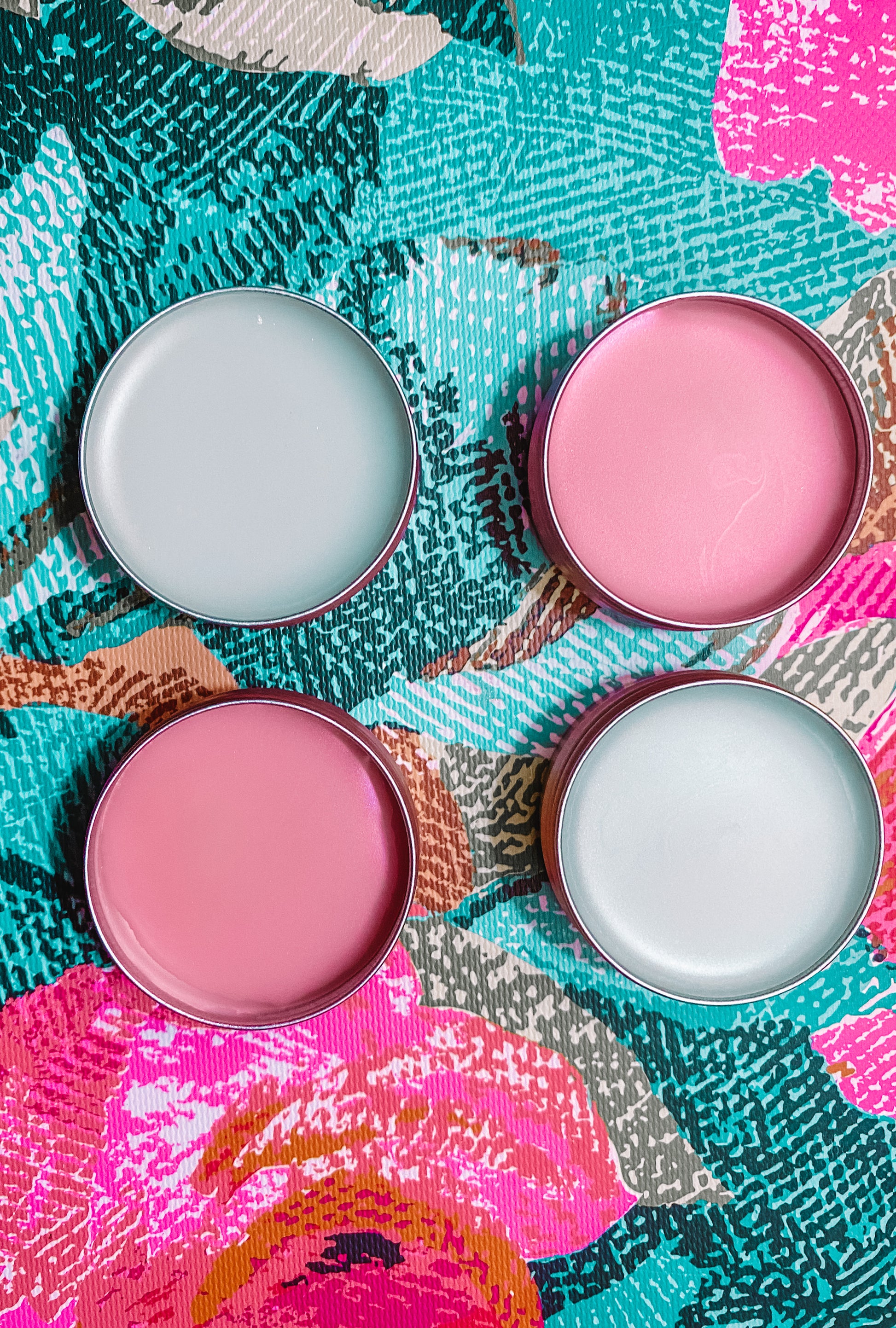 Beeswax, coconut oil, grapeseed oil, and cocoa butter, mica, fragrance/flavor oil.